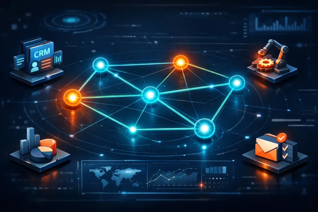 Lo que no es universal es cómo se conectan entre sí en tu caso particular. Qué herramientas usas, cómo hablan entre ellas, qué datos viajan de un lado a otro, qué triggers disparan qué acciones.
